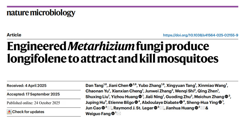 Dan Tang, Jiani Chen, Yubo Zhang, Xingyuan Tang, Xinmiao Wang, Chaonan Yu, Xianxian Cheng, Junwei Zhang, Wenqi Shi, Qing Zhen, Shuxing Liu, Yizhou Huang, Jiali Ning, Guoding Zhu, Meichun Zhang, Juping Hu, Etienne Bilgo, Abdoulaye Diabate, Sheng-Hua Ying, Jun Cao, Raymond J St Leger, Jianhua Huang, Weiguo Fang