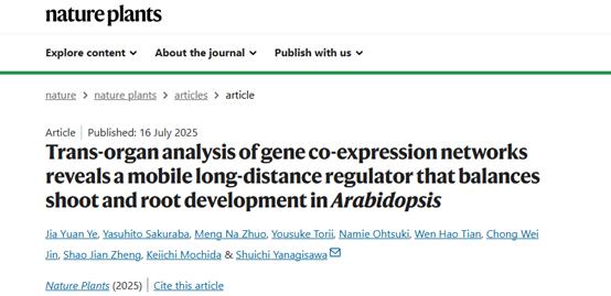 Title:Trans-organ analysis of gene co-expression networks reveals a mobile long-distance regulator that balances shoot and root development in Arabidopsis