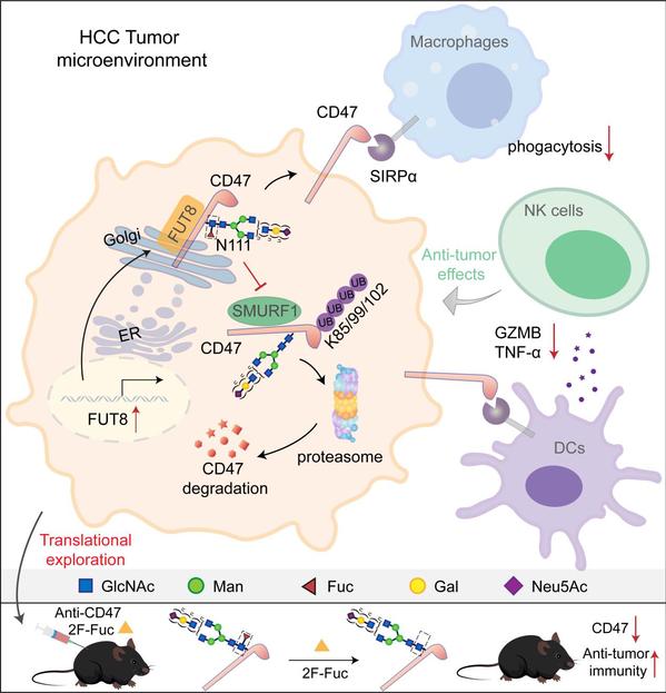Title: Core Fucosylation Represses SMURF1-Dependent Degradation of CD47 to Promote Tumor Immune EvasionYuting Cao , Siyuan Chai , Mingyang Li , Xiaoming Chen , Jiating Hu , Bingyi Lin , Liming Wu , Wen Yi, Qiang Zhu AbstractGlycosylation, the covalent attachment of glycans to proteins, lipids, and RNAs, is f...